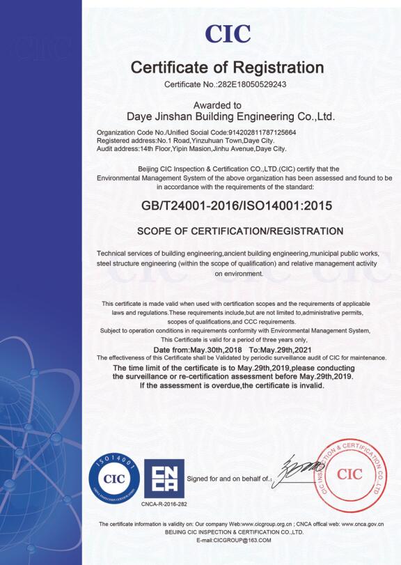 大冶金山建筑工程有限公司始建于1984年,屬鎮(zhèn)辦集體企業(yè)。1997年改制為大冶山建筑工程有限責(zé)任公司,屬股份制企業(yè)。2013年更名為大冶金山建筑工程有限公司,2018年3月公司資源重組,公司注冊(cè)資金達(dá)到10180.00萬元,公司法定代表人為劉瑞華。公司具有古建筑工程專業(yè)承包壹級(jí)、建筑工程施工總承包貳級(jí)、市政工程總承包叁級(jí)、鋼結(jié)構(gòu)工程專業(yè)承包叁級(jí)資質(zhì)。